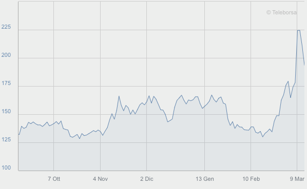 L'andamento dello spread tra Btp e Bund decennali negli ultimi sei mesi (Fonte: Borsa Italiana)[/caption]